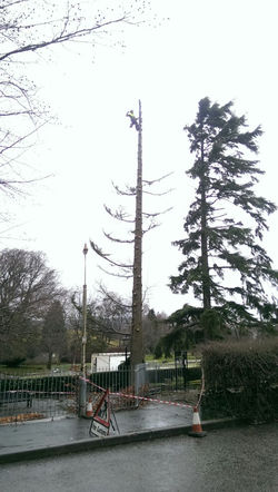 ![]() Tree surgeon next to felled tree | ![]() Christmas lights in mature beech tree | ![]() Hemlock dismantle, tree 99% dead. |